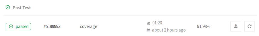If the pipeline succeeds, the coverage is shown in the merge request widget and in the builds table.
