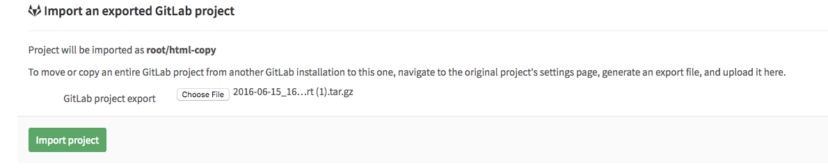 ) under 'Import sources'. Ask your administrator if you don't see the GitLab export button when creating a new project.- You can find some useful raketasks if you are an administrator in the import_export raketask.